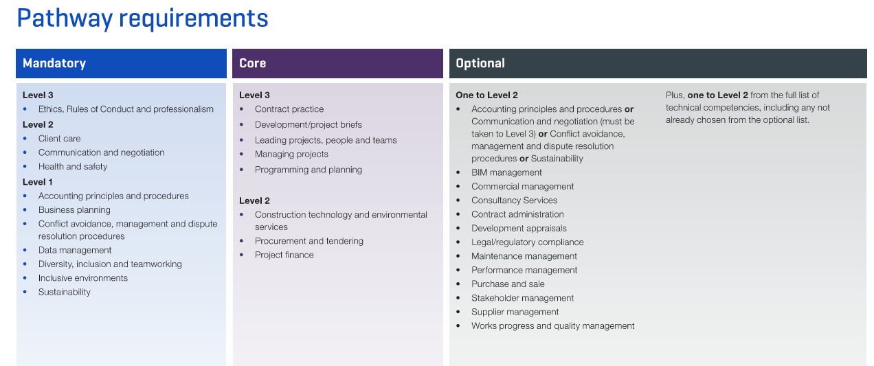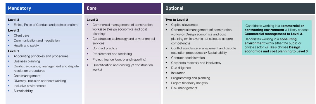Full List of RICS Technical Competencies可細閱RICS Requirements and Competencies Guide – August 2018